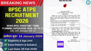 बीपीएससी सहायक नगर योजना पर्यवेक्षक भर्ती 2026, बिहार के शिक्षित युवाओं और अनुभवी पेशेवरों के लिए एक उत्कृष्ट करियर विकल्प है। यह पद सिर्फ वेतन और सुरक्षा ही नहीं, बल्कि राज्य के शहरी भविष्य को साकार करने का एक सार्थक मौका भी देता है। केवल 36 रिक्त पदों वाली इस प्रतिष्ठित भर्ती में प्रतिस्पर्धा कड़ी होने की उम्मीद है। अतः सभी पात्र उम्मीदवारों से अनुरोध है कि वे 05 फरवरी 2026 की अंतिम तिथि से पहले अपना आवेदन अवश्य पूरा कर लें और नगर नियोजन के क्षेत्र में अपना योगदान देकर एक बेहतर कल का निर्माण करें।