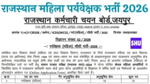 राजस्थान कर्मचारी चयन बोर्ड (RSSB) ने महिला उम्मीदवारों के लिए एक शानदार करियर अवसर प्रस्तुत किया है। महिला पर्यवेक्षक (Mahila Supervisor) पदों पर कुल 72 रिक्तियों के लिए भर्ती अधिसूचना जारी की गई है। ऑनलाइन आवेदन प्रक्रिया 7 जनवरी 2026 से शुरू हो चुकी है और 5 फरवरी 2026 तक आवेदन किए जा सकेंगे।